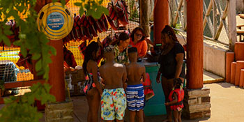 One stop shop for a variety of gifts and Magic Springs souvenirs ranging from apparel, key chains, toys, and accessories. This location is also where Cabana and Lazy Bear Bay Pool rental reservation check-in occurs.