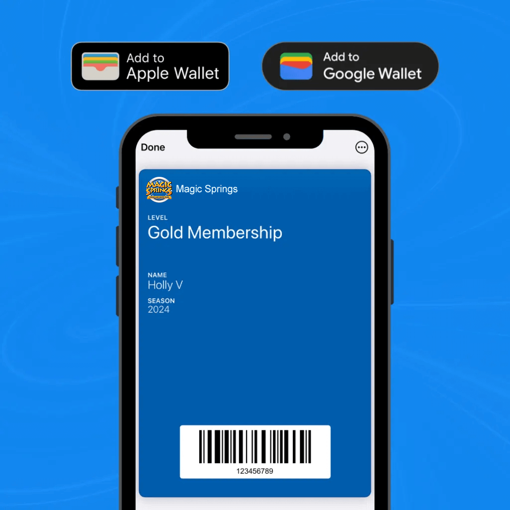 No more keeping up with a plastic card! This will let you keep a digital copy of your Season Pass on hand when you need it, making it easier for you to come through the gate at Magic Springs and get access to friend tickets & in-park discounts!