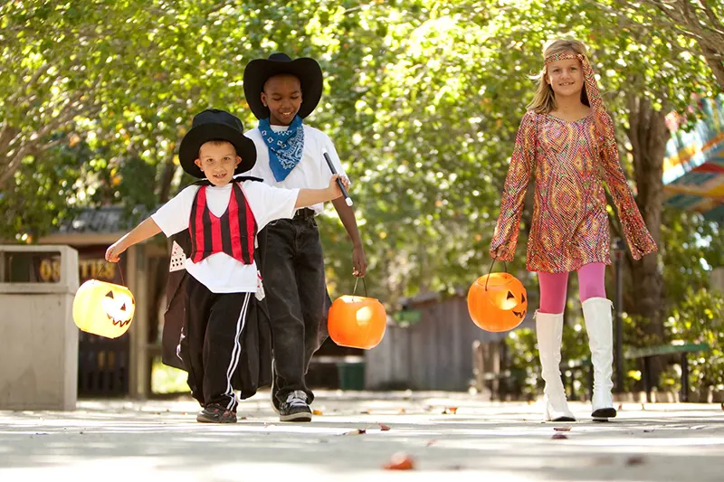 Costumes and partial makeup are permitted but some items (such as capes) may be restricted on certain rides for safety purposes.