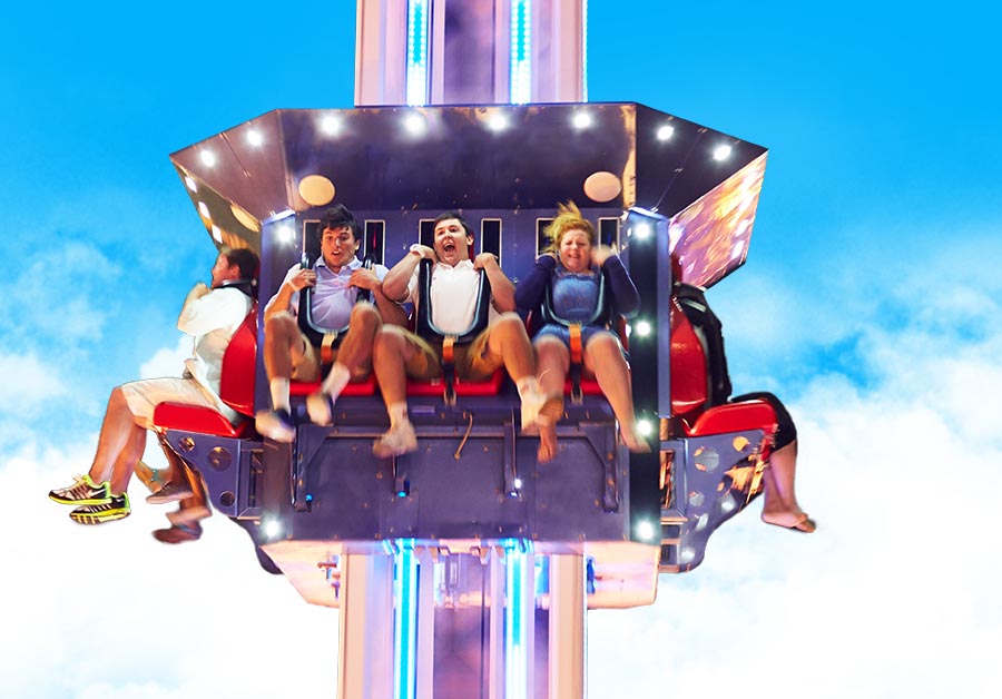 You’ll see things from a new perspective – that is, if you can keep your eyes open! Swoop, soar and dive for prey at heights up to 50 feet. The thrills keep coming as repetitive swings hurtle downward with a boom that rotates 360-degrees both clockwise and counter-clockwise at speeds up to 13 rpm. It might even pause for a moment just as…you…turn…upside…down!